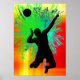 The sports action and energy of volleyball athletes are captured in silhouettes of action figures demonstrating extreme plays and strategies on the court. Digital paintings and illustrations of these teens, young men and women and pros include backgrounds of bright, vivid colours and splashes and bursts of light to highlight the action.