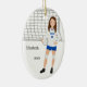 Volleyball Female Brunette Blue & White Ceramic Tree Decoration