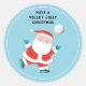 Creative volleyball Christmas holiday gift stickers and party favours design featuring Santa volleyball player.