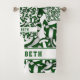 This cool volleyballs pattern towel set features varied size green and white volleyballs turned every which way on a white background - personalise the bath towel & hand towel with the athlete's name - by katz_d_zynes