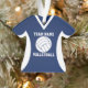 Dark blue volleyball jersey sports ornament. Personalise with your player's, name, team and date.