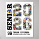 Personalised senior sports photo collage for athlete and sports player. This customisable photo gift is perfect for senior night, sports award banquet or birthday gift for your athlete son, daughter or student. It's a great way to display precious moments and memories from their sports games. The poster features a collage of photos, and it can be customised with names, player jersey number, school teams or any custom text. It makes a unique and meaningful gift for your team.