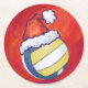 Volleyball with Christmas Hat Round Paper Coaster