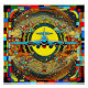 The A.I. created surreal interpretation of a futuristic surreal abstract landscape features towering structures with flying saucers and airplanes in flight navigating amongst them.