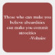 "Those who can make you believe absurdities can make you commit atrocities" warned Voltaire in the 18th century. This piece of disturbing wisdom has always been and will always be true.