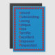 Positive words like valued, outstanding and unique make up the words volunteer on this fun card. The design is done in red and blue and surrounded by a red heart border. The inside text says, "Thanks for all you do!" but can be changed and personalised to fit your needs!
