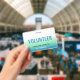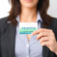 Simple, modern, blue, green and white ombre colour combination for horizontal ID badge , with large designation and without photo. It's easy to personalise and customise all graphic elements and text.