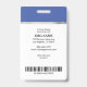 Volunteer badge with Photo, Name, Logo and All Info; plus place for scan bar and numbers. Brushed silver, blue and black design.