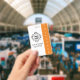 This identification badge for a volunteer worker or employee features a white background with a sample logo in the centre. You can personalise the ID badge to display your own company, business or organisation logo, or your own custom image. There is an area beneath the logo to print an employee name or other text. The title "VOLUNTEER" is printed along the right side over an orange banner. The back of the ID badge has an orange coloured background with white text where you can include your company phone number or other information.