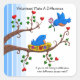 "If you're not making a difference, what difference do you make?" ~Daniel J. Radcliffe. A warm and colourful sticker design with a pair of bright blue birds, colourful tree branches and leaves, a lovely flowered nest, and inspiring words. Customise by changing the text field if you'd like to express your own thoughts, or leave as shown. Would make a great "thank-you" gift for a special volunteer.