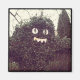 A humourous shrub in the parking lot of a Voodoo Doughnuts store in Southeast Portland, Oregon. This bush is shaped as their famous "Voodoo Doll Doughnut" with eyes & teeth. I am a huge fan of their doughnuts, & loved this clever garden décor!