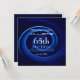 Abstract digital art with a blue spiral. Design on square flat card invitation with text for a modern 65th Birthday Celebration. Matching Birthday Save the Date (postcard), guest book (hard cover, spiral notebook and binder), party supplies and more...