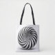 This striking shopping bag features a captivating spiral optical illusion that draws the eye into a mesmerising vortex. The design creates a dynamic sense of movement, making it appear as though the spirals are swirling inward endlessly. With bold black and white contrast, this optical illusion bag is both modern and eye-catching. Perfect for those who enjoy unique, geometric aesthetics, it’s designed to turn heads while remaining functional and sturdy for everyday use. Ideal for fashion-forward shoppers who appreciate a touch of artistic flair in their accessories.