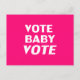 "Vote Baby Vote" hot pink, magenta, fuchsia, white Postcard