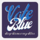 Democrat slogan typography style square sticker that's suitable for home or business, has "Vote Blue" and "Keep Democracy Alive" in retro style blue and white fonts