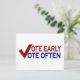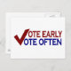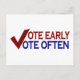 Cool vote early vote often t-shirts, hats and election day buttons and stickers. Encourage others to vote this Novemeber with original, funny voting clothes, keychains, bumper stickers and election gifts.