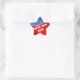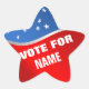 Vote For - add your custom name for a campaign sticker for any kind of election. Star shape sticker with abstract flag background with red at bottom and white stars on blue at top.