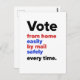 Voting by mail has a lot of advantages! Folks might need some encouragement to make the switch, and some states require voters to request a mail ballot every election. This card can be used prior to ballot-request deadlines and mailed-ballot deadlines, depending on the message.