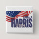 Show the country who belongs as the next President of the United States with this stylish pinback button! "Kamala Harris 2024" text in patriotic coloured text with wavy American flag