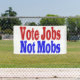 Banner urging voters to support republicans and jobs instead of democrats and violence.