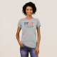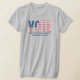 Let your voice be heard! Inspirational women's heather grey election shirt features a "Vote" text design with an American flag pattern of stars and stripes in red, white, and blue colours. The navy blue "Like the whole world depends on you" custom text can be personalised.