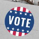 Round sticker with the text "vote" and stars and stripes borders.