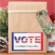 VOTE Text filled with Flag colours with a blue and red border. Add your candidate's name in the space provided. Distinctive.