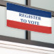 Vote is in blue text in the centre of this outdoor banner. A blue stripe is at the top. A red stripe is at the bottom. A white stripe is in the middle. You can change the words if desired.