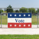 Encourage voting in your community. The top is a blue field that has five white stars. The middle stripe is white and says 'Vote' in dark blue text. The bottom stripe is red with five white stars.