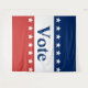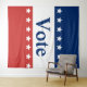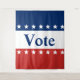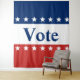 This red, white, and blue photo backdrop has the word 'Vote' in the centre. The text is dark blue. The top stripe is blue and has white stars. The centre stripe is white. The bottom stripe is red with white stars