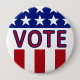 Simple button with stars on the top and stripes on the bottom. Large text in middle says "VOTE". Available in various styles and sizes. Discounts for multiple orders. By D. Bennett from Balance America.