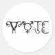 VOTE spelled out with feminism symbols, supporting reproductive healthcare, transgender persons, contraception, and breast health care. Some profits will be donated to women's support organisations.