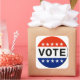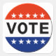 Stickers with image of a button with the words Vote, in colours of red, white and blue.