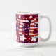 This text image spells out "vote" in red and white stripes with blue and white stars. The backround is red, white and blue resembling our American flag. Stars and stripes. These mugs are available in assorted styles, colours and sizes.