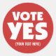 Vote Yes sticker in attention getting white on red. Edit the text line at the bottom to the name of your issue (or delete it if unneeded). Wear or post for any cause or ordinance, proposition or other local election campaign or vote.