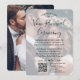Invite family and friends to witness you say "I do" again with an elegant modern photo overlay vow renewal ceremony all-in-one invitation with QR code RSVP. All wording is simple to personalise for any type of marriage celebration, such as a sequel wedding or anniversary reception. (IMAGE PLACEMENT TIP: An easy way to centre a photo exactly how you want is to crop it before uploading to the Zazzle website.) By scanning the QR code with their phone, guests are sent directly to the wedding website to reply to the invitation. An online rsvp process reduces the chance that cards will be lost in the mail. It's also more versatile, in that you can ask for more detailed information, such as meal choices, food allergies, and song requests. All response information can be customised or deleted. The modern minimalist black and white design features two pictures of the couple, trendy handwritten script calligraphy, and chic typewriter style typography. Whether or not you eloped due to the covid pandemic or downsized to a smaller, more intimate minimony or micro wedding, the happily ever after party can still get started. Congratulations to the bride and groom!