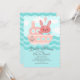 A sweet baby shower invitation for a girl featuring a pink bunny on a boat in the water. (<a href='https://www.freepik.com/free-vector/cute-background-of-pink-boat-with-bunny_1112030.htm'>Designed by Freepik</a>). <br/><br/>The card is easy to customise with your wording, font, font colour and choice of six paper types.<br/><br/>Not exactly what you're looking for? All our products can be custom designed to meet your needs at no extra charge.<br/><br/>Simply contact us at askcottonlamb@gmail.com<br/><br/>Coordinating products available: