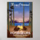 Voyageurs National Park Minnesota vintage style camp fire cartoon landscape travel poster.