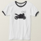 Great T-Shirt, looks cool, good thickness and fits well. Slightly lighter than expected, not pitch black, more of a faded black, but still looks good.