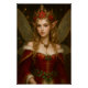This enchanting piece depicts a beautiful fairy wearing a golden tiara adorned with poinsettias. She is dressed in a luxurious red gown, her serene expression and iridescent wings radiating graceful elegance and eternal fantasy. Perfect for lovers of fairy tales, fantasy art, and magical elegance. This artwork was generated by AI based on original human concepts.