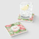 Personalised stone coaster: Classy and fresh seamless pattern composed with red hibiscus flowers and leaves on pale background. Custom Monogram included on white round shape. Matching luggage, luggage tag and more... Do not forget the whole collection of flowers patterns and monogram.