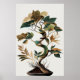 Wabi-Sabi art of a beautifully detailed tree with swirling branches and a variety of green and gold leaves standing elegantly against a neutral backdrop. The leaves display a blend of colours and patterns, adding depth and interest to the composition.