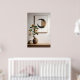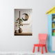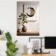 Poster of a minimalist interior scene featuring a decorative ceramic vase holding a small, elegantly styled plant with multicolored leaves, placed against a wall adorned with graphic art of crescent shapes. Soft natural light enhances the serene and modern atmosphere, highlighting the harmonious blend of art and nature.