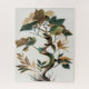 Jigsaw puzzle. A Wabi-Sabi image of a beautifully detailed tree with swirling branches and a variety of green and gold leaves stands elegantly against a neutral backdrop. The leaves display a blend of colours and patterns, adding depth and interest to the composition.
