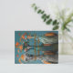 This postcard bursts with charm and whimsy! It features three quirky, brightly coloured birds with eccentric appearances, each sporting oversized glasses that amplify their unique personalities. The playful orange feathers atop their heads add to their fun, carefree vibe. The birds are set against a vibrant teal backdrop, making them pop with energy. The phrase “Wackadoodle Day from Me to You” perfectly complements the whimsical artwork, creating a joyful, lighthearted greeting that’s guaranteed to bring a smile!