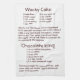 Dark brown text on white kitchen towel. Wacky Cake and Chocolate Icing recipes. Both on one towel!