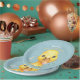 This adorable Waddle McQuackers baby shower plate will delight your guests and mother-to-be alike. Waddle is a happy little duck who loves to swim in the pond and is very excited to help you celebrate the arrival of your special baby boy. This party plate features a cute water coloured duck surrounded by a wreath of greenery. The background is a blue green background with light blue polka dots.