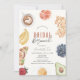 This cute bridal shower invitation features a cream background with brunch foods such as waffles, coffee, croissant, avocado, orange, bananas, egg, blueberries, and strawberry . The reverse side features a white background with gingham check pattern in orange. Personalise it for your needs. You can find matching products at my store.