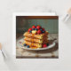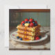 Cute food themed greeting card. An illustration of waffles with strawberries, blueberries, syrup and butter on a pretty antique plate.
