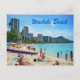 Hawaii's famous Waikiki Beach in a vintage 1960's-style card.